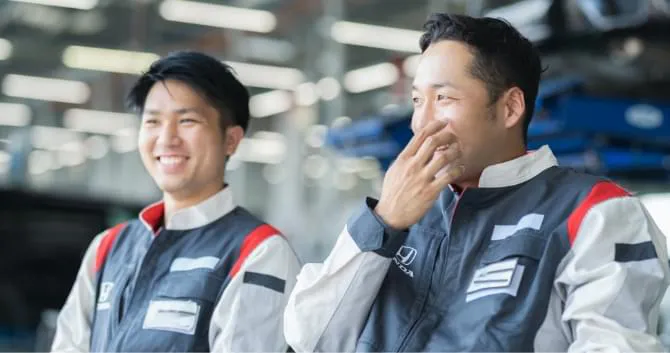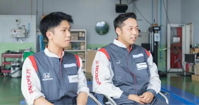 仕事を教えるときは「優しく丁寧に」。その姿勢は先輩から後輩へ脈々と伝えられてきました。Hさんから教えてもらった知識やお客さま・同僚への接し方を入社5年目、お客さまの命を預かる最前線に立つ整備士に成長したKさんは、先輩として次の後輩たちへ伝えていきます。